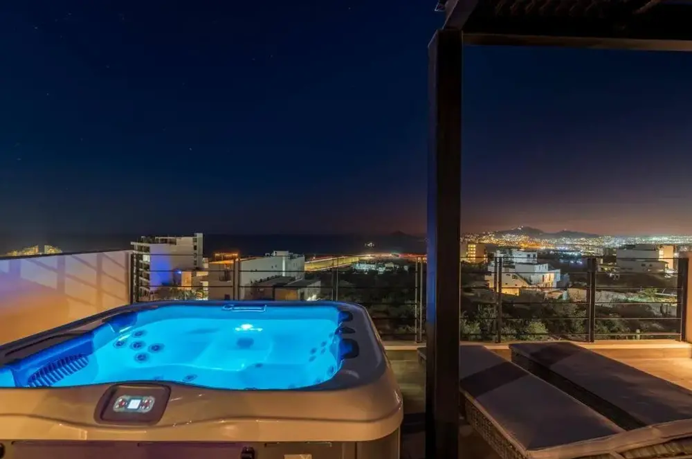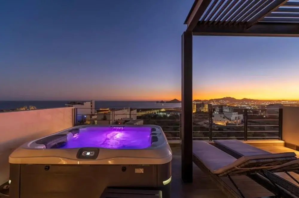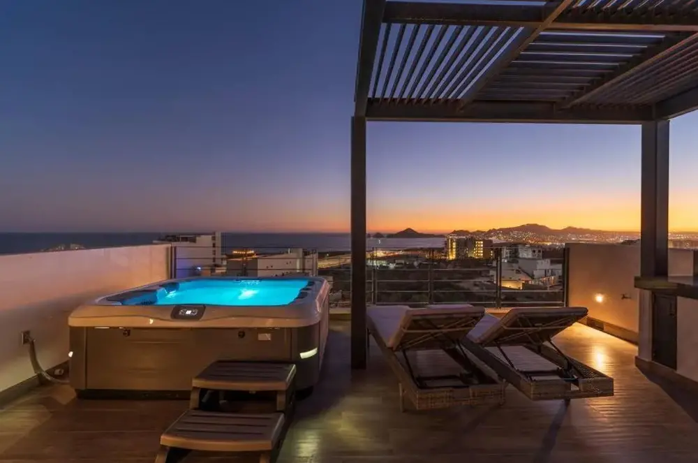 La estancia fue absolutamente divina, con una comunicación consistente y útil de Paola en todo momento. Ubicada en una comunidad cerrada con instrucciones claras y detalladas, la propiedad era fácil de encontrar y se sentía segura. Durante mi visita, el área estaba tranquila con solo otra familia ocasionalmente usaba la piscina compartida, que se sumaba a la atmósfera pacífica. La bañera de hidromasaje privada y la azotea expansiva fueron los principales destacados: completas con una parrilla BBQ, asientos de salón y impresionantes vistas del arco. Los amaneceres y las puestas de sol eran impresionantes, y la serenidad del vecindario es un hallazgo raro en Cabo. La casa estaba bien equipada con utensilios de cocina, detergente de lavandería y otros elementos esenciales, además de extras amigables con la playa como sillas Tommy Bahama y un paraguas. La decoración era espaciosa, de buen gusto y claramente diseñada con simplicidad y calidad intencionales. Aprecié que la unidad estaba escondida del bullicio del centro de la ciudad, pero aún lo suficientemente cerca como para acceder fácilmente cuando se desee. Ubers era confiable, y el estacionamiento estaba disponible para aquellos con un vehículo. Si bien el tráfico puede ser un poco agitado una vez en la carretera principal, no le resta valor a la experiencia general. La entrega de alimentos fue una gran comodidad después de largos días. La azotea se sentía completamente privada, y aunque había algunas construcciones algunos edificios, era mínimo y no perjudicial. En general, una estadía excepcional: recomiendo esta propiedad a cualquiera que busque un retiro limpio, espacioso y tranquilo en Cabo. ¡Gracias Paula!